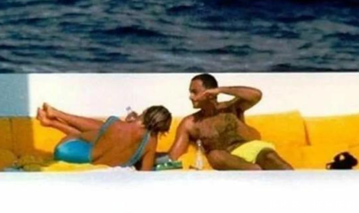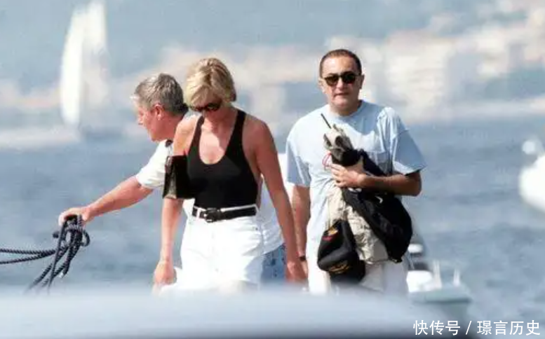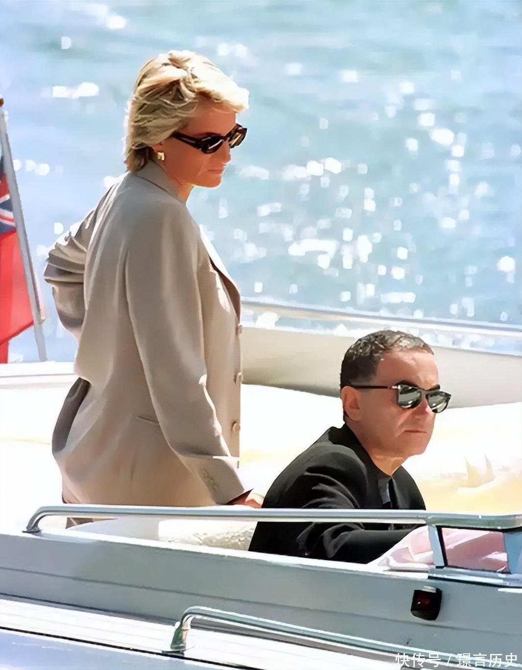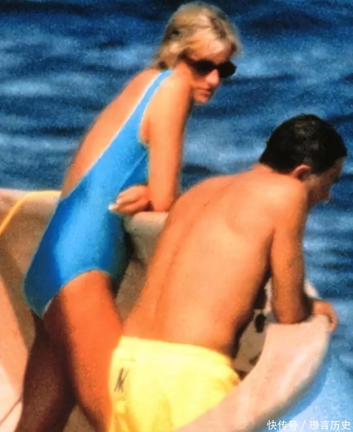 1997年的盛夏日节,多迪和戴安娜两东说念主在法国圣特罗佩湾的豪华游轮上怡悦性游玩,戴安娜一稔泳衣,身边是一派璀璨的大海,组成赏心悦谋划风光。
