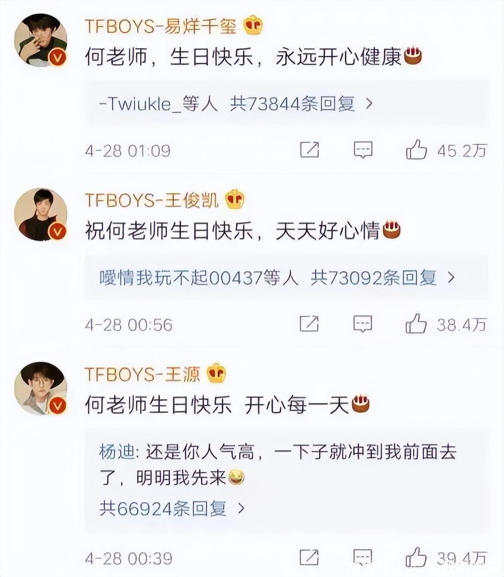 不管是大花小花,如故小生影帝,都会在这一天卡点给何炅奉上祝愿。