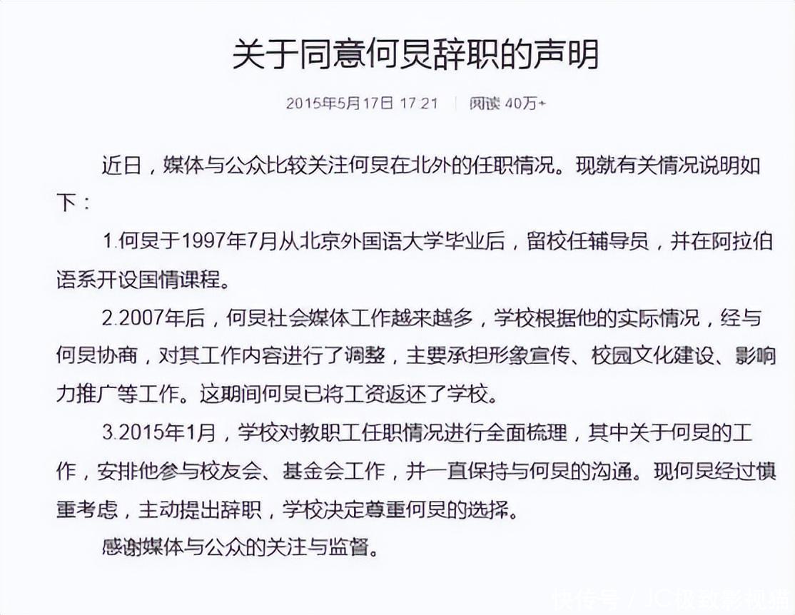 濒临这么的质疑,何炅很快发布了澄清声明,并从学校引咎下野。